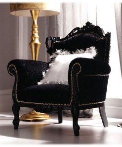 Кресло, декорированное резьбой. Наполнение — полиуретан. Возможны различные варианты отделки и обивки, в том числе выполнение в ткани клиента