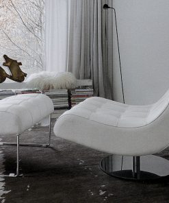 Кресло без подлокотников, вращающееся. Наполнение — полиуретан. Возможны другие варианты обивки, в том числе выполнение в ткани клиента