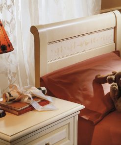 Односпальная кровать с деревянным изголовьем, декорированным росписью. Возможны другие варианты отделки