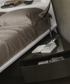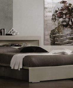 Угловая двуспальная кровать с 2 встроенными прикроватными тумбочками. Возможны другие варианты отделки.