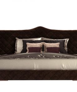 Двуспальная кровать с удлинённым мягким изголовьем с деревянными профилями. Наполнение: пенополиуретан. Обивка декорирована стёганой прошивкой. Ножки выполнены из металла. Возможен вариант кровати с контейнером. Возможны другие варианты отделки и обивки