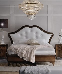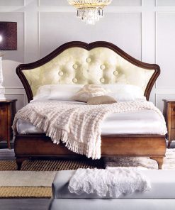 Двуспальная кровать с высоким мягким изголовьем. Возможны другие варианты обивки и отделки.