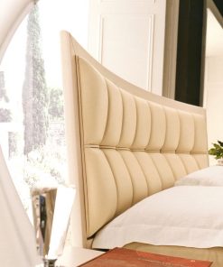 Двуспальная кровать с мягким изголовьем и каркасом, без изножья. Возможен вариант кровати с контейнером. Возможны другие варианты отделки и обивки.