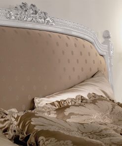 Двуспальная кровать с мягким изголовьем. Декорирована резьбой. Возможны другие варианты отделки и обивки