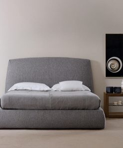 Двуспальная кровать с обитым изголовьем и основанием. Возможны другие варианты обивки, в том числе в коже и ткани клиента.