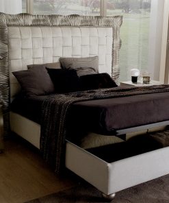 Двуспальная кровать с внутренним контейнером, с обитым изголовьем и основанием. Возможны другие варианты отделки и обивки.