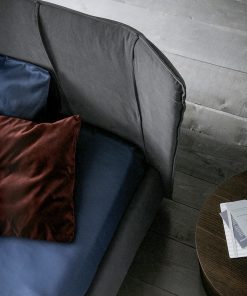 Двуспальная кровать с обитым изголовьем и основанием. Возможен вариант с внутренним контейнером и другие варианты обивки, в том числе в ткани клиента.