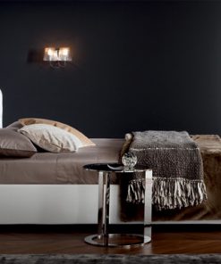 Двуспальная кровать с обитым основанием и обитым в технике капитоне изголовьем. Металлические ножки. Возможен вариант кровати с внутренним контейнером. Возможны другие варианты обивки, в том числе в ткани клиента и декор кристаллами Swarovski.