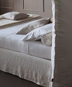 Двуспальная кровать с обитым изголовьем и основанием. Покрытия изголовья съемные. Возможен вариант кровати с внутренним контейнером. Возможны другие варианты обивки, в том числе в ткани клиента.