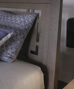 Двуспальная кровать с деревянным изголовьем. Возможны другие варианты отделки.