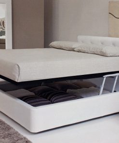 Двуспальная кровать с внутренним контейнером для белья, с обитым изголовьем и основанием. Ткань на изголовье съемная. На основании съемная ткань, кожа и искусственная ткань. Возможны другие варианты обивки.