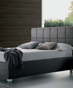 Двуспальная кровать с внутренним контейнером, с обитым изголовьем и основанием. Возможен вариант кровати без контейнера. Возможны другие варианты обивки и ножек.