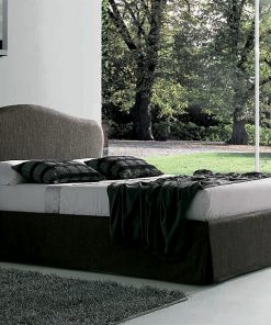 Двуспальная кровать с внутренним контейнером, с обитым изголовьем и основанием. Возможен вариант кровати без контейнера. Возможны другие варианты обивки и ножек.