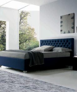Двуспальная кровать с внутренним контейнером, с обитым основанием и обитым в технике капитоне изголовьем. Возможен вариант кровати без контейнера. Возможны другие варианты обивки и ножек.