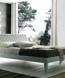 Двуспальная кровать с обитым основанием и обитым в технике капитоне изголовьем. Возможны другие варианты отделки, обивки и ножек.