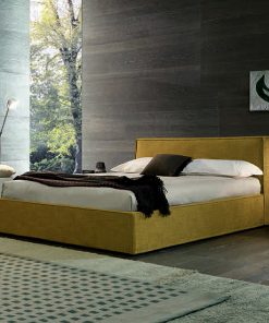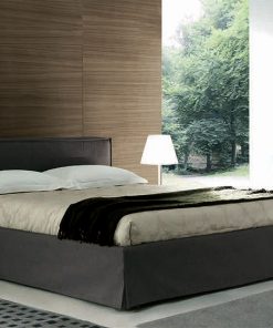 Двуспальная кровать с внутренним контейнером, с обитым изголовьем и основанием. Возможен вариант кровати без контейнера. Возможны другие варианты обивки и ножек.