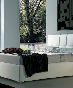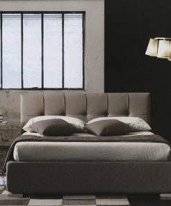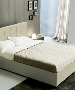 Двуспальная кровать с внутренним контейнером, с обитым основание и обитым в технике капитоне изголовьем. Возможен вариант кровати без контейнера. Возможны другие варианты обивки и ножек.
