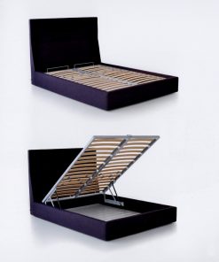 Двуспальная кровать с внутренним контейнером, с обитым изголовьем и основанием. Возможны другие варианты обивки, в том числе в ткани клиента.