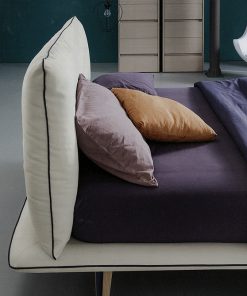 Двуспальная кровать с обитым изголовьем и основанием. Возможны другие варианты отделки и обивки, в том числе в ткани клиента.