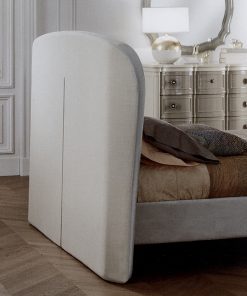 Двуспальная кровать с мягким обитым изголовьем и обитым основанием. Съемный чехол. Возможны другие варианты отделки и обивки, в том числе в ткани клиента.