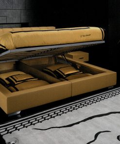 Двуспальная кровать с металлическими ножками, внутренним контейнером, обитым изголовьем и основанием. Возможны другие варианты обивки.