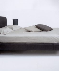 Двуспальная кровать с обитым изголовьем и основанием. Встроенная прикроватная тумбочка с выдвижным ящиком и стеклянной столешницей. Возможны другие варианты отделки и обивки.