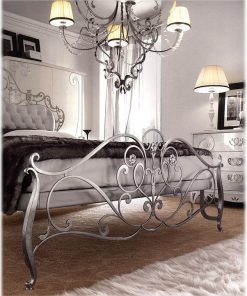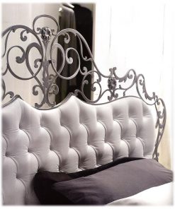 Двуспальная кровать с кованым мягким изголовьем и изножьем. Возможны другие варинаты отделки и обивки.