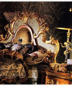 Кровать двуспальная с высоким изголовьем, декорирована резьбой. Возможны другие варианты отделки и обивки, в том числе выполнение в ткани клиента