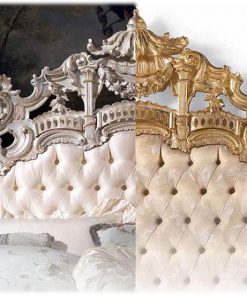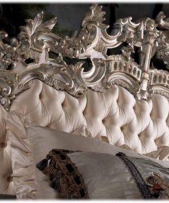Двуспальная кровать с высоким мягким изгловьем, без изножья. Наполнение — полиуретан. Декорирована резьбой ручной работы. Возможны другие варианты обивки.