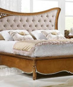 Двуспальная кровать с обитым в технике капитоне изголовьем. Украшена росписью. Возможны другие варианты отделки и обивки.