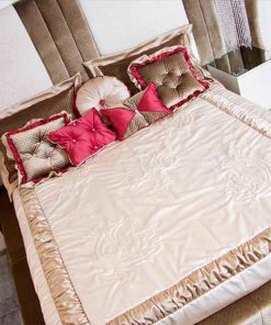 Двуспальная кровать с широким мягким изголовьем, без изножья. Наполнение — полиуретан. Возможны другие варианты обивки.