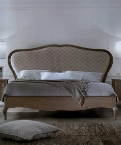 Двуспальная кровать с мягким изголовьем. Структура — липа. Возможны другие варианты отделки и обивки, в том числе выполнение в ткани клиента