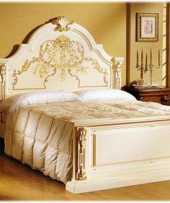 Двуспальная кровать с высоким жестким изголовьем и изножьем. Декорирована резными элементами. Возможны другие варианты отделки.