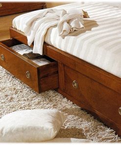 Двуспальная кровать с высоким мягким изголовьем, без изножья. В основание кровати встроены 2 ящика. Возможны другие варианты отделки и обивки.