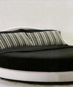 Двуспальная круглая кровать с мягким изголовьем, без изножья. Наполнение — полиуретан. Возможны другие варианты обивки.