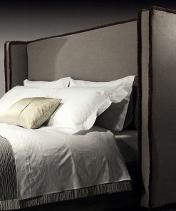 Двуспальная кровать с обитым изголовьем и основанием. Возможны другие варианты обивки, в том числе в ткани клиента.
