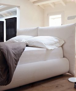 Двуспальная кровать с внутренним контейнером для белья, С обитым изголовьем и основанием. Ткань на изголовье съемная. На основании съемная ткань, кожа и искусственная кожа. Возможны другие варианты обивки.