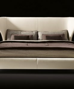 Двуспальная кровать с металлическими ножками, с обитым изголовьем и основанием. Возможны другие варианты обивки, в том числе в ткани клиента.