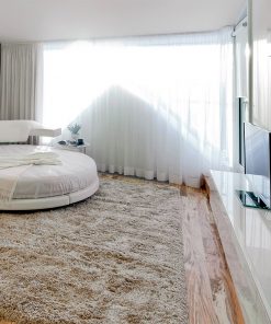 Круглая кровать с обитым изголовьем и основанием. Возможны другие варианты обивки.
