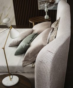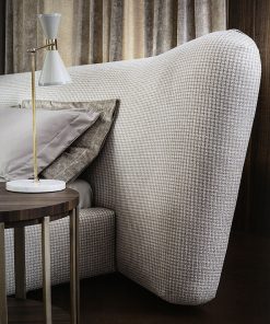 Двуспальная кровать с удлинённым мягким изголовьем. Возможны другие варианты обивки