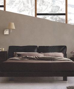 Двуспальная кровать с обитым изголовьем. Возможен вариант с внутренним контейнером для белья. Возможны другие варианты отделки.