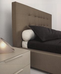 Двуспальная кровать с обитым основанием. Изголовье обито в технике капитоне. Возможны другие варианты отделки и обивки.