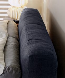 Двуспальная кровать с обитым изголовьем и основанием. Возможны другие варианты обивки, в том числе в коже и ткани клиента.