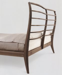 Двуспальная кровать с фигурным деревянным изголовьем и основанием с прямыми ножками. Возможен вариант с изогнутыми ножками. Возможны другие варианты отделки