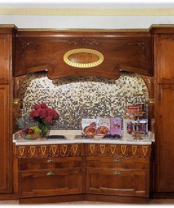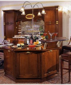 Пример композиции кухни. Топ — мрамор. Барная стойка обшита кожей крокодила. Возможны различные варианты отделки, а так же возможны различные комплектации кухни по желанию клиента.