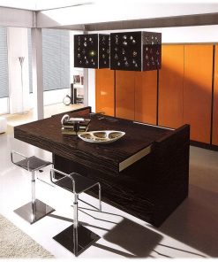 Пример композиции кухни. Отделка фасада — ламинат, шпон, стекло. Возможны различные варианты отделки и различные модификации