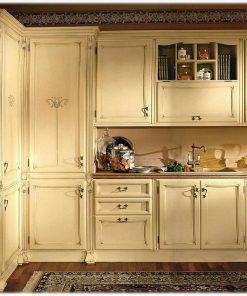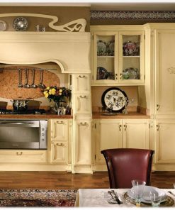 Пример композиции кухни. Декорирована резными элементами. Столешница выполнена из мрамора. Возможны различные комплектации кухни по желанию клиента. Возможны другие варианты отделки.