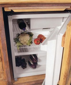 Кухня с бытовыми электроприборами (плита, мойка, смеситель, холодильник). Столешница выполнена из травертина. Декорирована росписью ручной работы. Возможны другие варианты отделки.