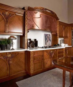 Пример композиции кухни. Декорирована резными элементами. Возможны другие варианты отделки и различные комплектации кухни по желанию клиента.