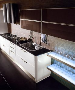 Пример композиции кухни. Навесные шкафчики можно выполнить с подсветкой. Столешница из ламината. Возможны различные модификации и варианты отделки